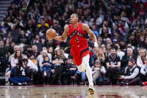 上半场,猛龙球员斯科蒂·巴恩斯表现出色,进攻高效的同时也很全能,打了18分钟,投篮7中6,罚球2中2,拿到14分5篮板8助攻2盖帽,正负值+10。